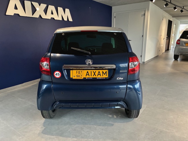 Aixam City Premium in de mooie kleur: marine blauw met zilver dak. ABS (AntiBlokkeerSysteem) + EBD. Met de stille sterke Kubota motor, radio/CD, mooi leder interieur, LED-dagverlichting, elektrische ramen, 14" Black Edition velgen, centrale deurvergrendeling met afstandbediening, ultra soepel schakelsysteem, onderhoudsboekjes en reservesleutel compleet, de genoemde prijs is inclusief: grote afleverbeurt, tenaamstelling, 6 maanden garantie, poetsen en thuisbezorgd.
